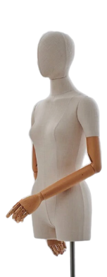 YMY-22F – новая трендовая модель, торс и голова обтянуты тканью (светлый лен), шарнирные руки изготовлены из натурального дерева и имеют прочные металлические крепления. Руки и пальцы двигаются и фиксируются в любом положении. Голова поворачивается и снимается, за счет чего удобно переодевать, не растягивая одежду. В комплекте металлическая подставка с возможностью регулировки высоты.