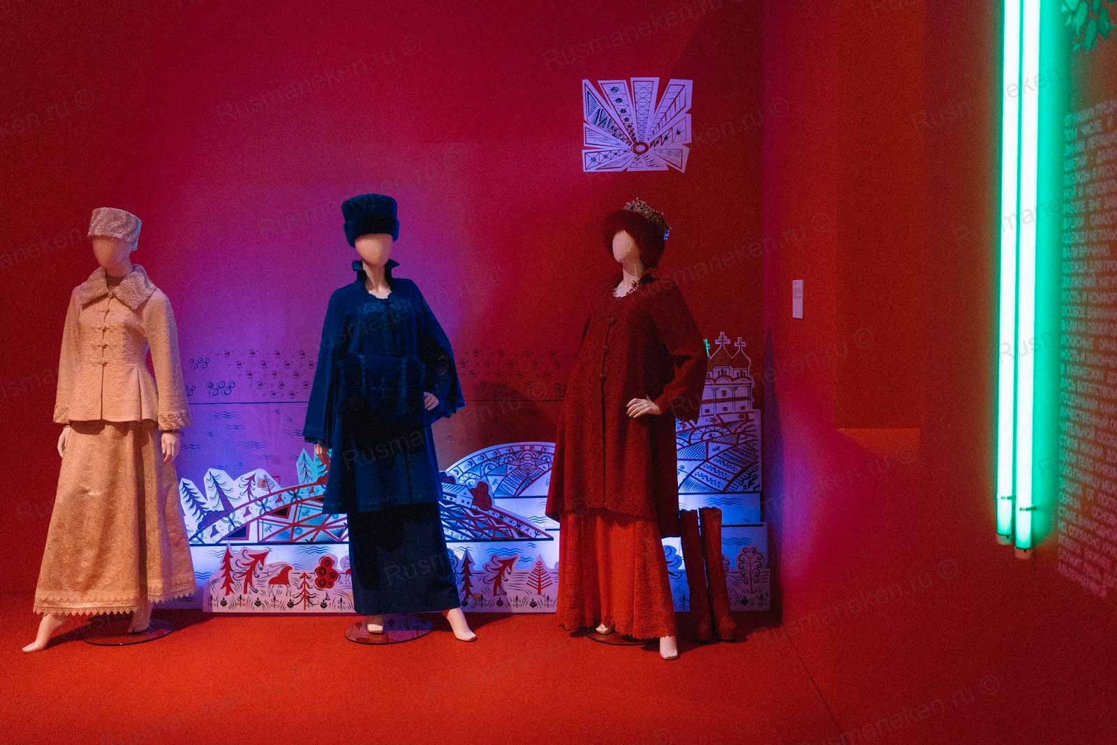 Экспонаты на выставке представили на манекенах РусМанекен , которые поставили в срок к началу выставки.